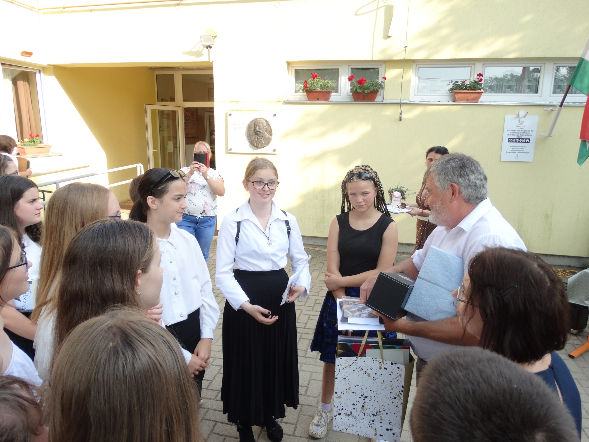 A tanévzáró ünnepségünkön szeretettel köszöntöttük Szabó János tanár urat nyugdíjba vonulása alkalmából, aki kimagasló pedagógiai tevékenységének elismeréséül Pedagógus Szolgálati Emlékéremben részesült, melynek átadására Hódmezővásárhelyen a tankerület által szervezett pedagógus napi ünnepségen került sor 2023. június 22-én délelőtt. Köszönjük az együtt töltött éveket! Kívánunk Neki családja és unokái körében eltöltött boldog, élményteli nyugdíjas éveket!