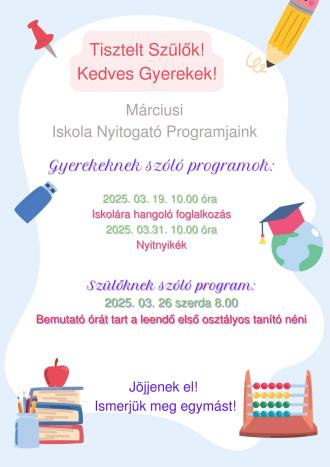 Az iskolára -hangoló foglalkozások márciusban tovább folytatódnak a székkutasi Gregus Máté Általános Iskolában. Ebben a hónapban nemcsak a gyerekeket, hanem a szülőket is várjuk egy bemutató órára!